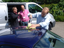 Erwähnt sei auch, dass den Mitgliedern unseres Clubs an diesem Tag Sonderkonditionen eingeräumt wurden, die den einen oder anderen zum Einkauf verführten. Manche müssen die Vielzahl der Information erst einmal verarbeiten, andere kauften das eine oder andere Mittelchen, wiederum andere legten sich das komplette Grundsortiment zu. Nicht einmal vor dem Kauf eines Profi-Exzenterschleifgerätes wurde zurückgeschreckt. Sei gehofft, dass diese Mittel/Geräte den gewünschten Erfolg erbringen.