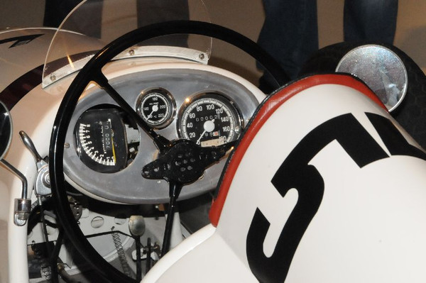 Der Mathé Eigenbau Monoposto mit Porschemotor zeugte von seinem Mut mit solch einem winzigen Renner Höchstleistungen zu vollbringen, noch dazu mit nur einem Arm an Schaltung und Steuer.