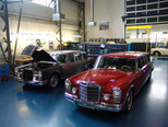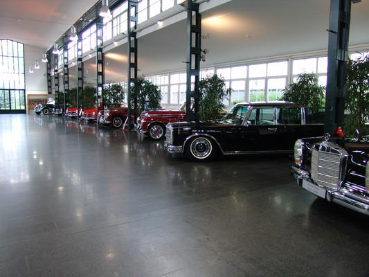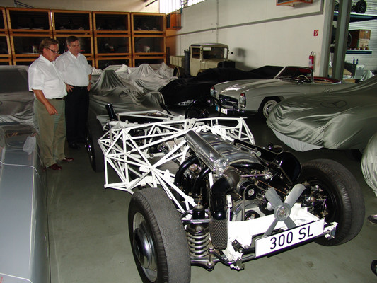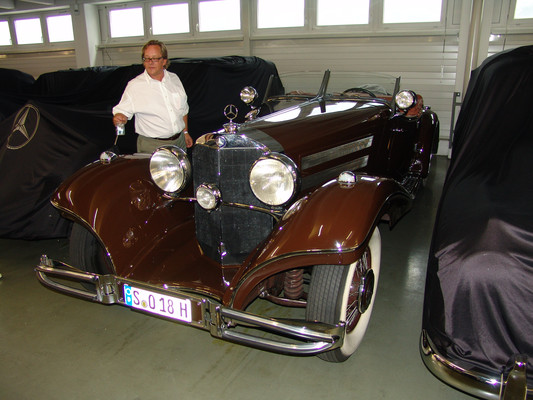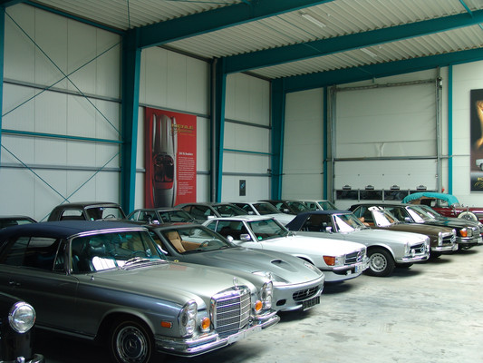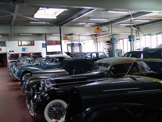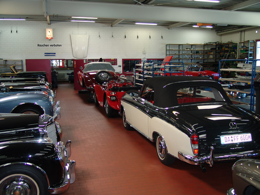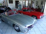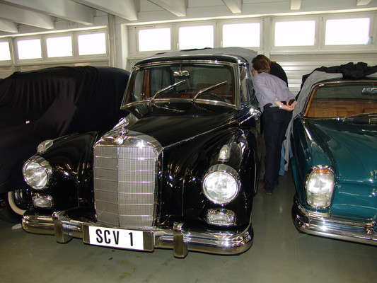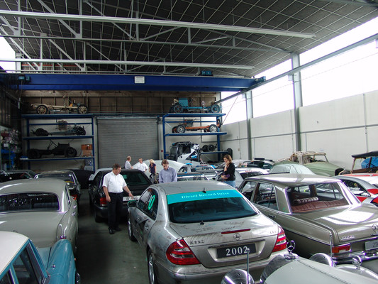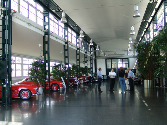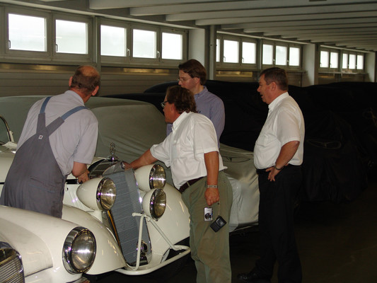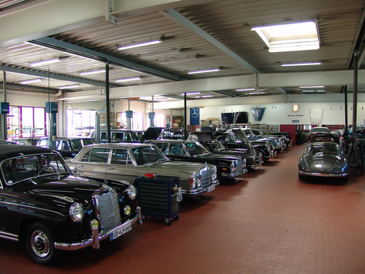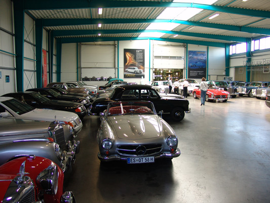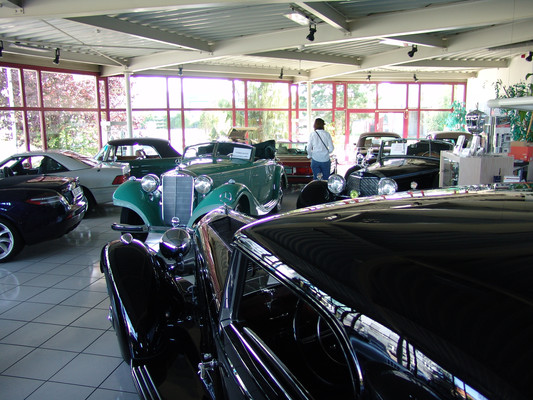 Der nicht besonders große Showroom präsentierte sich uns mit äußerst seltenen und in hervorragendem Zustand befindlichen Fahrzeugen (300SL (Roadster+Flügeltürer, 500K, SL 500 (R107, mit nur 2.000km), 280SE 3,5 Cabrio (W111) und 2 McLaren SLR).