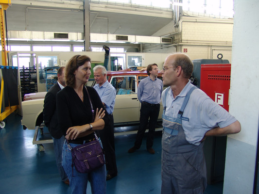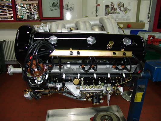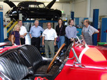 Die eigentliche Werksführung begann mit den Manufakturbereichen 'Interieur' und 'Exterieur'. Jedes Fahrzeug wird in diesem Bereich von einem oder maximal 2 Technikern bearbeitet. Von hier ging es dann in die Fertigung der 5,5 Liter, 6,3 Liter und SLR Motoren. Es gilt stets der Grundatz: 'Ein Mann ein Motor', d.h., dass jedes Aggregat von einer Person allein gefertigt und zum Schluss mit dessen Namen versehen wird.