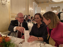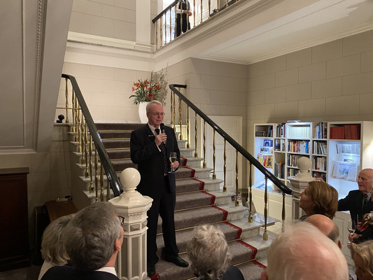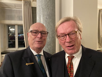 Nachdem die allseits freundschaftlichen Begrüßungen mit dem (prickelnden) Empfangsdrink in der Hand gar kein Ende nahmen, mußte unser Präsident das Mikrofon zu Hilfe nehmen, um mit launigen Worten unsere Gäste und Mitglieder offiziell Willkommen zu heißen.