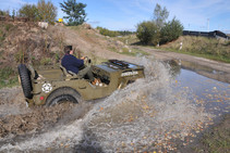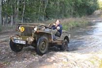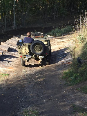 Der Spaßfaktor stieg von Minute zu Minute. Die zunächst skeptischen Blicke der anderen Teilnehmer wichen immer mehr der respektvollen Bewunderung der 74 Jahre alten Technik. Die anspruchsvollsten Übungen waren das Befahren eines 50cm tiefen Wasserhindernisses mit steilen steinigen Ein- und Ausfahrten sowie ein felsiger Hang mit 30° Steigung. Letzterer durfte bauartbedingt nur vom G-Modell, dem Lada, dem Jeep Grand Cherokee und dem Willys befahren werden. Alle 4 Fahrzeuge haben dieses Hindernis erklommen, wobei der Willys sich seinen Weg nicht bahnen musste, sondern mit Leichtigkeit den direkten Weg nach oben nahm.
