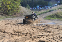 So fuhren wir im Laufe des Tages durch verschiedene Hügellandschaften, auf unebenen Waldwegen, bezwangen Strecken mit 40° Gefälle, erklommen felsige Hänge mit 30° Steigung, querten Brücken aus Holzbohlen, bezwangen Treppen und durchquerten verschieden tiefe Wasserhindernisse. Während der unterschiedlichen Streckenabschnitte zeigte sich auch, dass nicht jedes Fahrzeug alle Hindernisse bewältigen konnte.