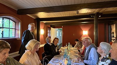 Bei bestem Wetter genossen rund 20 Mitglieder und Gäste den Aperitif im Garten, bevor es drinnen kulinarisch weiterging.