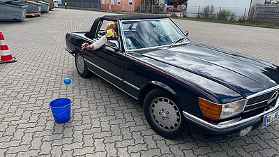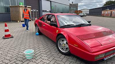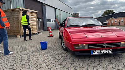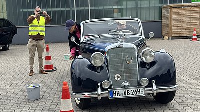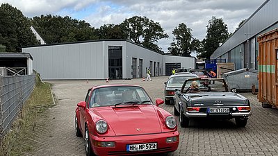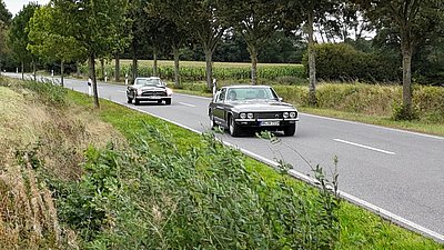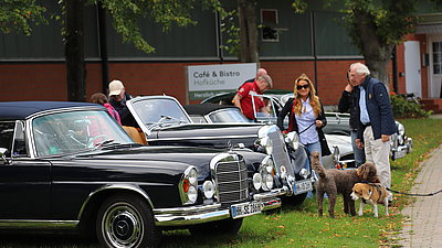 Das Mittagsziel war das wunderschöne Gestüt Gut Tangstedt, welches uns mit seiner repräsentativen Einfahrt willkommen hieß. Für Schaulustige wurden die Oldtimer auf der großen Rasenfläche platziert, ein toller Anblick.