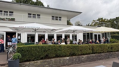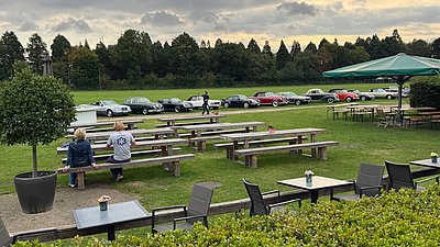 Ziel der zweiten Etappe über 78km war der Golfclub Hamburg-Holm. Während das Orga-Team die Ergebnisse der Wertungsprüfungen und Bordkarten auswertete konnte jeder das große Kuchenbuffet genießen und Benzingespräche führen.