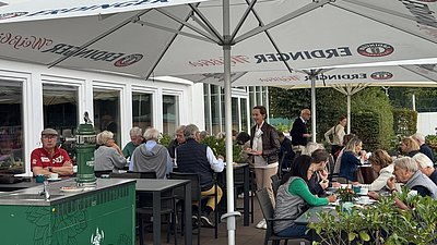 Verwöhnt wurden wir vom Café & Bistro Hofküche auf Gut Tangstedt mit einem phantastischen Buffet und einem Blick in gleich zwei Reithallen, PS trifft PS.